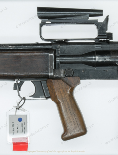 Below: the "battle-ready" example of the 'standard' EM-2 that lies on display in the collection of the Small Arms School at Warminster.