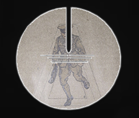 The sight picture through the early optic unit, incorporated into the rifle's carrying handle, is shown right.